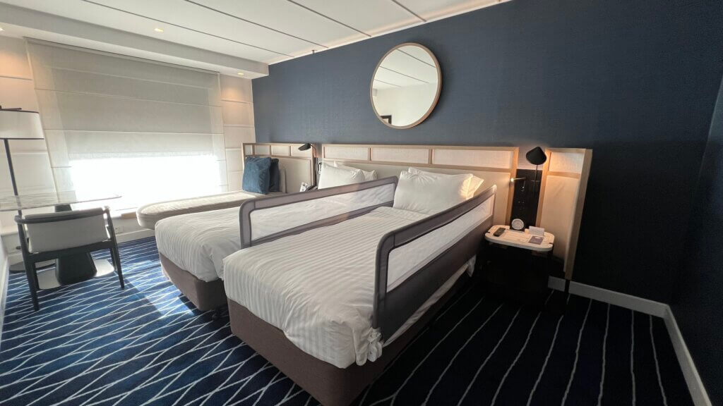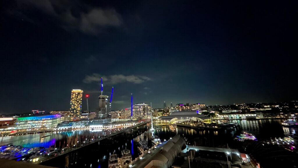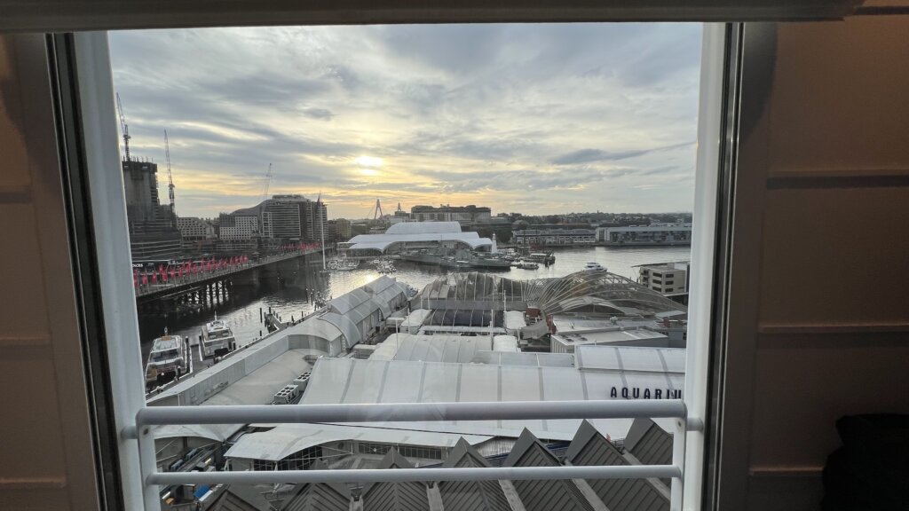 為了省錢,我們一樣是預定了最基本的房型,想靠著 GOH 威能升級。而他們也的確幫我們升級了,只是房型沒變,風景從面對大街變成面對達令港。要知道,這樣轉一邊的房價差別可不小的,因為大家都想從房間看到熱鬧的港口。有煙火的話,房間窗戶直接變成貴賓席!