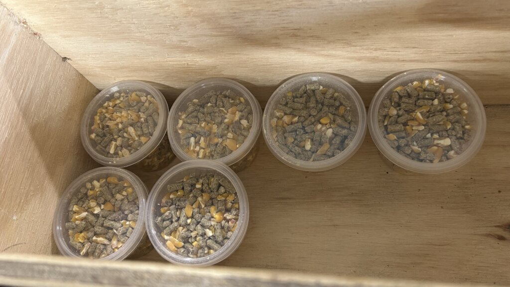 而且仔細看的話地上滿滿的都是散落的飼料,可能是他們早早被餵飽,或者是他們根本就吃膩了,總之就是不肯出來。害我們後面在園區來回遊蕩一陣子,才找到幾隻肯跳出來吃飯被我們拍照的袋鼠。